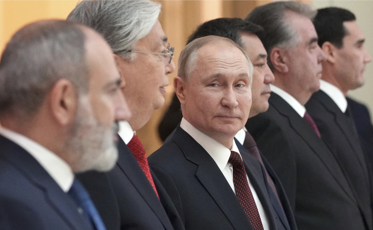 epa10378679 Russian President Vladimir Putin attends an informal summit of the Commonwealth of Independent States (CIS) in St. Petersburg, Russia, 26 December 2022. An informal meeting of the leaders of the CIS countries will be held on December 26-27 at the Boris Yeltsin Presidential Library in St. Petersburg. It is attended by President of Azerbaijan Ilham Aliyev, Prime Minister of Armenia Nikol Pashinyan, President of Belarus Alexander Lukashenko, President of Kazakhstan Kassym-Jomart Tokayev, President of Kyrgyzstan Sadyr Japarov, President of Tajikistan Emomali Rahmon, President of Turkmenistan Serdar Berdimuhamedov and President of Uzbekistan Shavkat Mirziyoyev. According to Vladimir Putin, cooperation between the CIS countries is proceeding successfully, by the end of the year the trade turnover should reach 100 billion USD. EPA/ALEXEI DANICHEV/SPUTNIK/KREMLIN POOL MANDATORY CREDIT