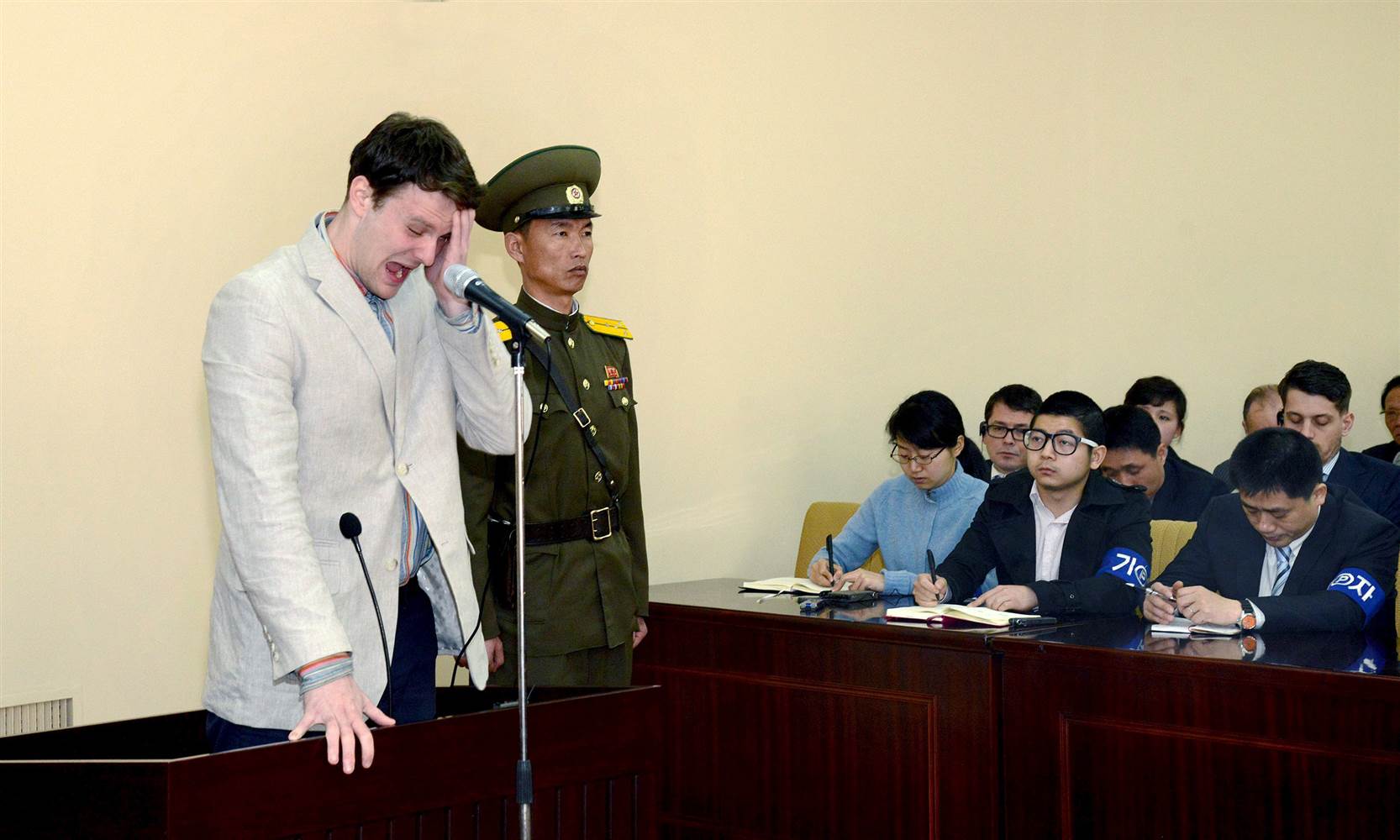 Ο 22χρονος συνελήφθη από τις αρχές της Βόρειας Κορέας τον Ιανουάριο του 2016 και καταδικάστηκε σε 15 χρόνια καταναγκαστικών έργων επειδή επιχείρησε να πάρει μαζί του στις ΗΠΑ μια προπαγανδιστική αφίσα.