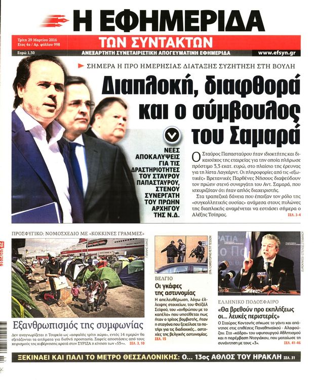 Η ΕΦΗΜΕΡΙΔΑ ΤΩΝ ΣΥΝΤΑΚΤΩΝ: «Διαπλοκή, διαφθορά και ο σύμβουλος του Σαμαρά»