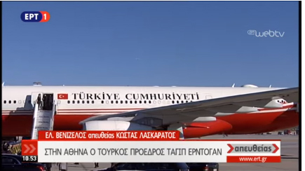 Προσγειώθηκε στις 10:40 στο αεροδρόμιο Ελευθέριος Βενιζέλος το αεροσκάφος που μετέφερε τον Τούρκο πρόεδρο Ταγίπ Ερντογάν και της πολυμελούς συνοδείας του.