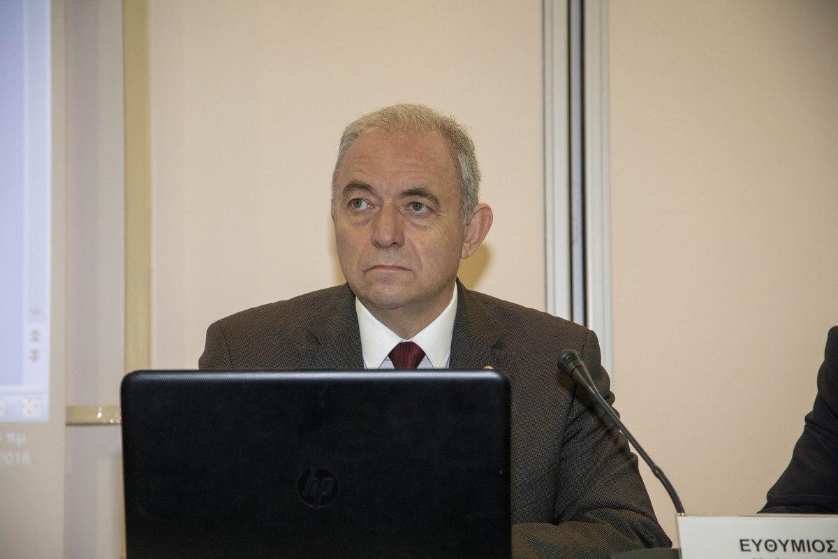 Ο πρόεδρος του Οργανισμού Αντισεισμικού Σχεδιασμού και Προστασίας (ΟΑΣΠ), καθηγητής Ευθύμιος Λέκκας κατά τη διάρκεια εκδήλωσης της Ένωσης Αστυνομικών Υπαλλήλων για την κλιματική αλλαγή και τις πυρκαγιές, που πραγματοποιήθηκε στο αμφιθέατρο της ΓΑΔΘ. Θεσσαλονίκη, Δευτέρα 3 Δεκεμβρίου 2018 ΑΠΕ ΜΠΕ/PIXEL