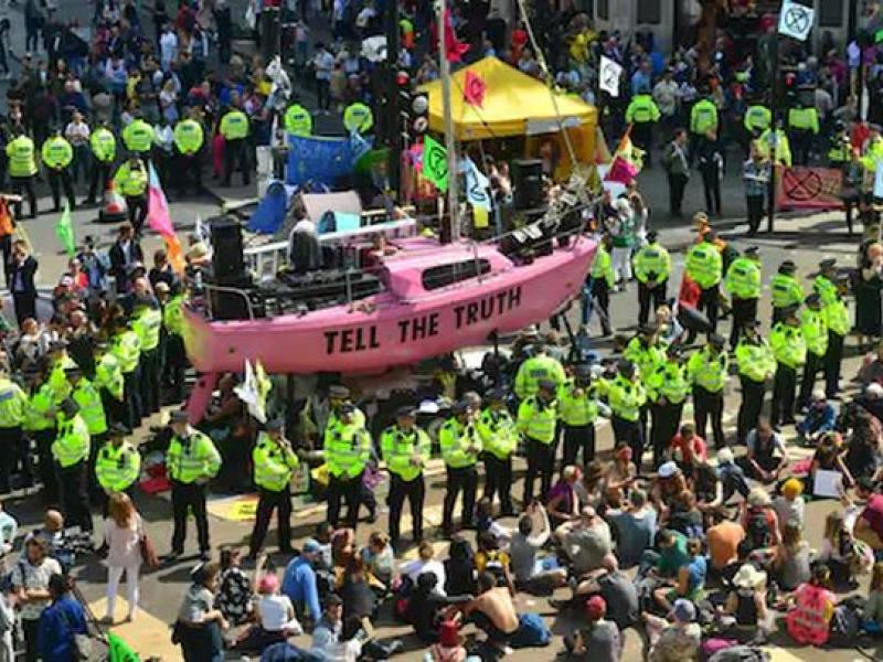 Η αστυνομία είχε εγκρίνει την πρόθεση της ακτιβιστικής οργάνωσης Extinction Rebellion να διαδηλώσει, με την προϋπόθεση να μην παρεμποδίσει την κίνηση στους δρόμους.