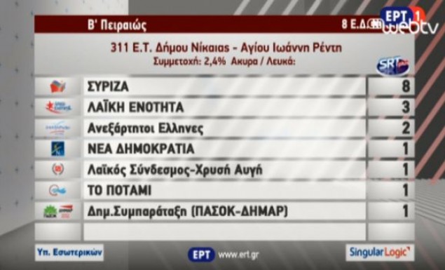 Με συμμετοχή μόλις 2,4% έκλεισε το εκλογικό τμήμα 311 του Δήμου Νίκαιας-Αγίου Ιωάννη Ρέντη στη Β’ Πειραιώς.