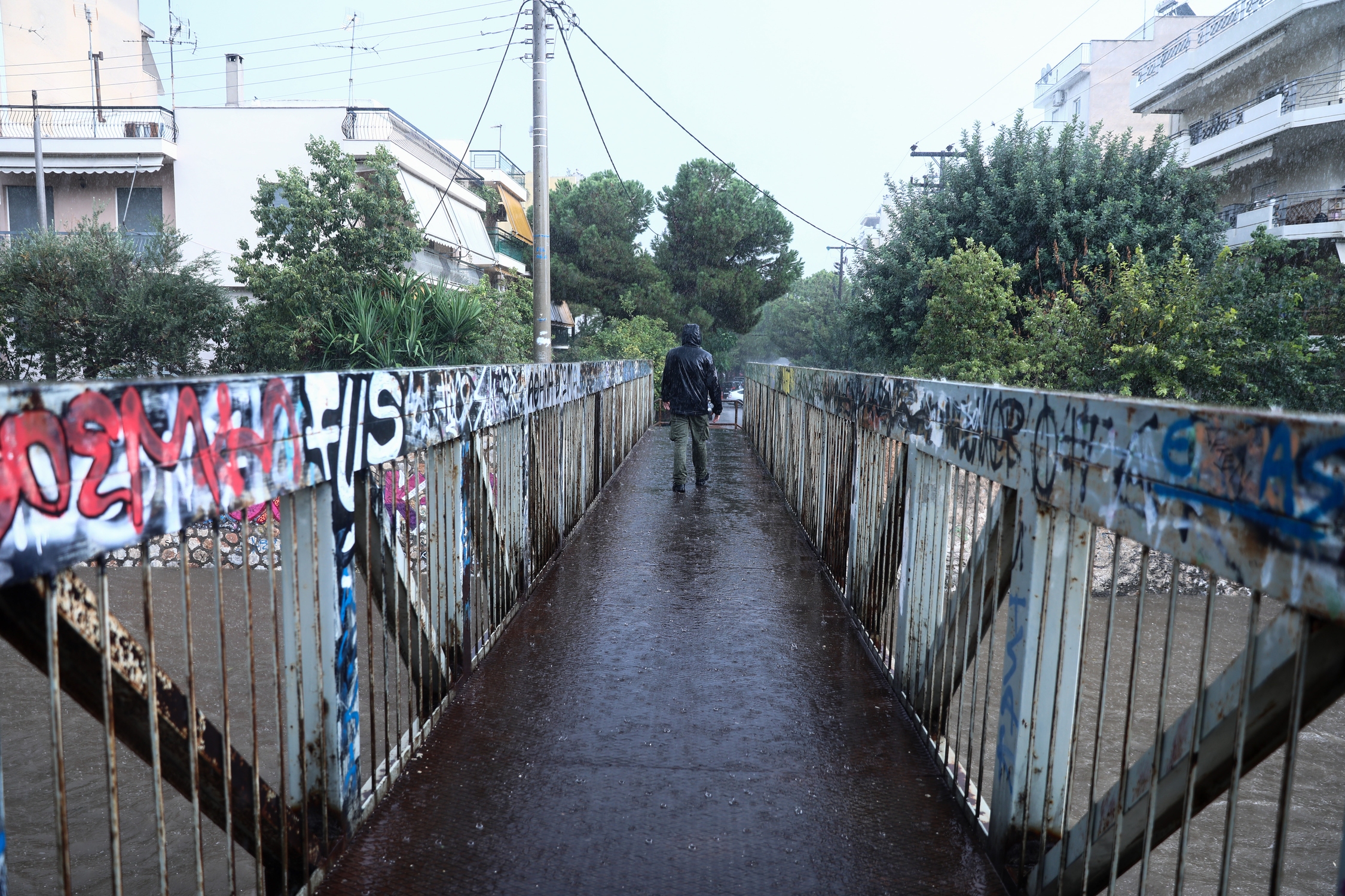 13.10.2021 Ο ποταμός Ιλισσός καθώς η Ελλάδα πλήττεται για δεύτερη μέρα από το ακραίο καιρικό φαινόμενο «Μπάλλος» στην Αθήνα.