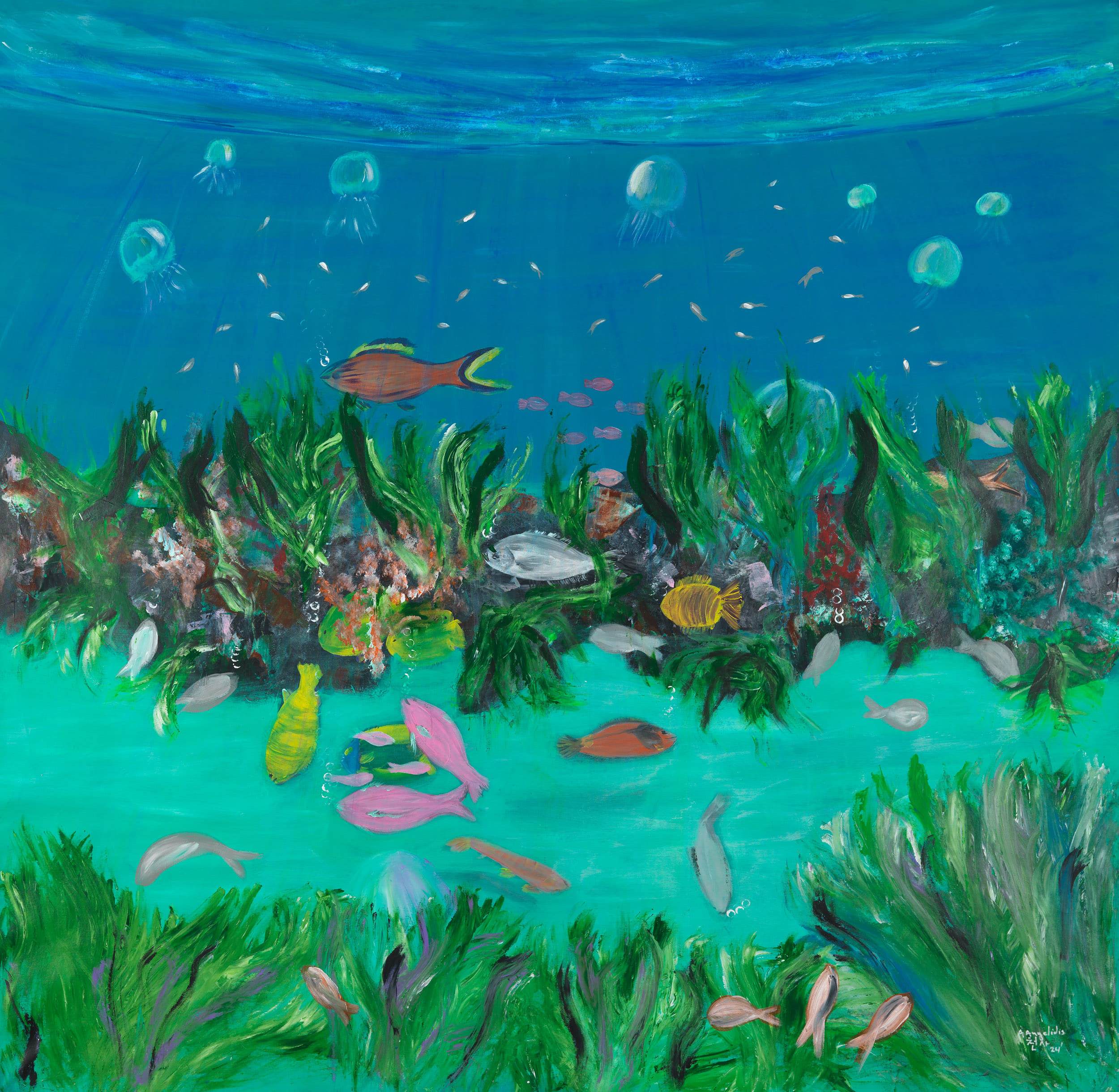 Μιλώντας για την νέα έκθεση «Under the Water» στο Jeju Park Stone Museum, σημείωσε ότι «ζωγράφισα βυθούς πρώτη φορά για έκθεση. Εμπνεύσθηκα τα έργα μου από την περιοχή του Τζέτζου, όπου φιλοξενείται. Πρόκειται για ένα νησί στα νότια της Κορέας με απόκρημνα βράχια και εντυπωσιακούς βυθούς, στους οποίους βουτάνε γυναίκες βετεράνοι κυρίως, από 60-90 χρονών, χωρίς μπουκάλες βέβαια, για να φέρουν στην επιφάνεια σφουγγάρια, κοράλλια, κοχύλια και ότι έχει να τους προσφέρει ο πλούτος της θάλασσας».