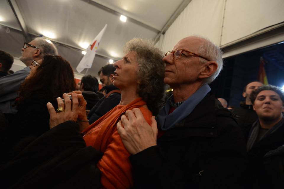 «Αυτό είναι η αλλαγή για την Ελλάδα και η αλλαγή για όλη την Ευρώπη» λέει η Ιταλίδα Ρίτα στην «El Mundo» κρατώντας ένα πλαστικό ποτήρι με σαμπάνια στο χέρι κάτω από την οθόνη όπου προβάλλονται τα αποτελέσματα.