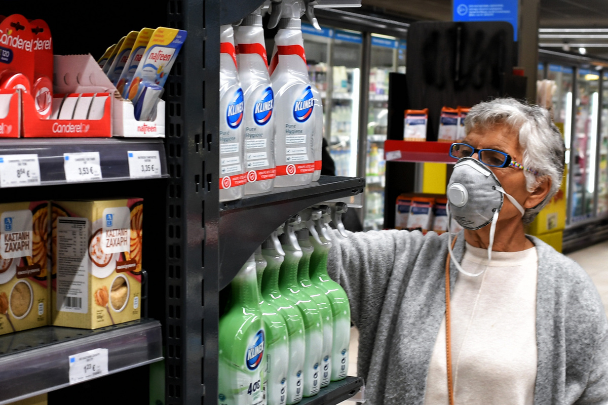 Κόσμος ψωνίζει σε σούπερ μάρκετ στην Κόρινθο, Δευτέρα 23 Μαρτίου 2020. Σε ισχύ τέθηκε στις 6 το πρωί η εφαρμογή των πρόσθετων αυστηρών μέτρων με απαγόρευση κυκλοφορίας, για τον περιορισμό της διάδοσης του κορονοϊού, που ανακοίνωσε στο μήνυμά του ο πρωθυπουργός Κυριάκος Μητσοτάκης. ΑΠΕ-ΜΠΕ/ΑΠΕ-ΜΠΕ/ΒΑΣΙΛΗΣ ΨΩΜΑΣ