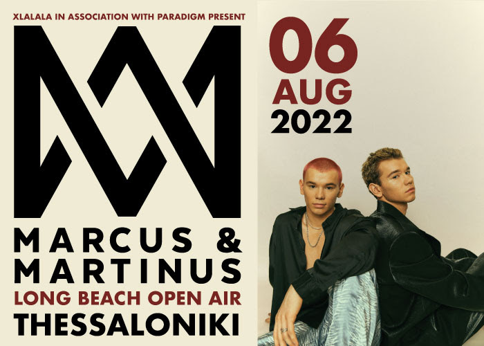 Στις 6 Αυγούστου 2022 οι Marcus & Μartinus θα ξανάρθουν στην Ελλάδα, για πρώτη όμως φορά θα εμφανιστούν στη Βόρεια Ελλάδα. Στη σκηνή του Long Beach Open Air θα τραγουδήσουν για τα μικρά και απλά, θα μοιραστούν κοινές αλλά πολύτιμες ανθρώπινες στιγμές, θα γιορτάσουν μαζί με το ελληνικό κοινό την αρχή μιας νέας εποχής.