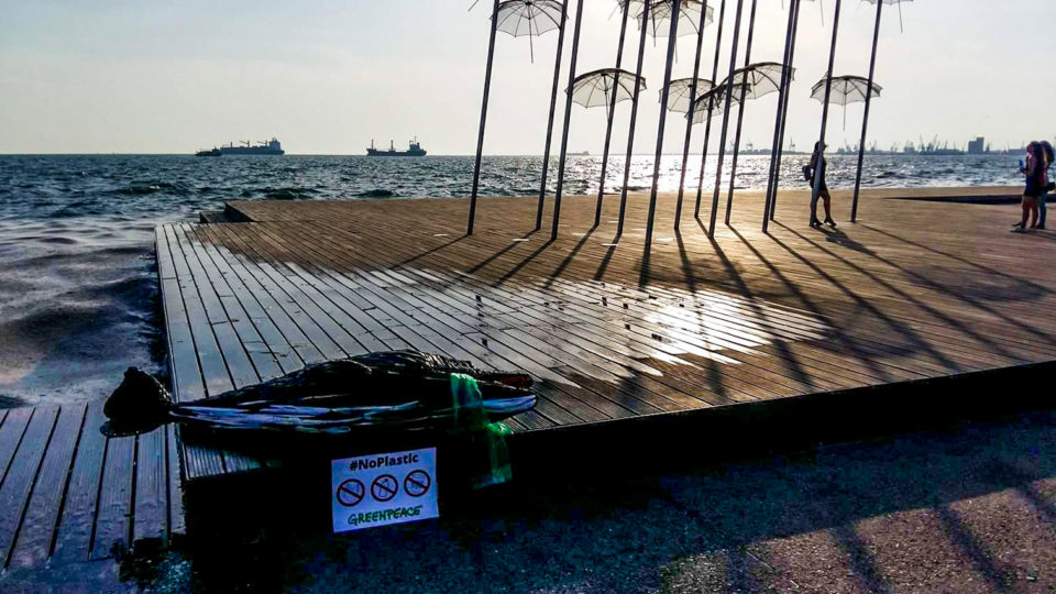 Ένα διαφορετικό …δελφίνι «ξέβρασε» η θάλασσα, σήμερα το απόγευμα, στην παραλία της Θεσσαλονίκης. Ένα δελφίνι από πλαστικά ήρθε για να μας υπενθυμίσει «την εξάρτησή μας από το πλαστικό, το μέγεθος του προβλήματος της ρύπανσης που δημιουργεί και το πόσο επικίνδυνη είναι τελικά η εξάρτηση αυτή για τις πόλεις μας, τις θάλασσές μας και την ίδια μας την υγεία», όπως χαρακτηριστικά αναφέρει η Greenpeace, που διοργάνωσε την όλη δράση.