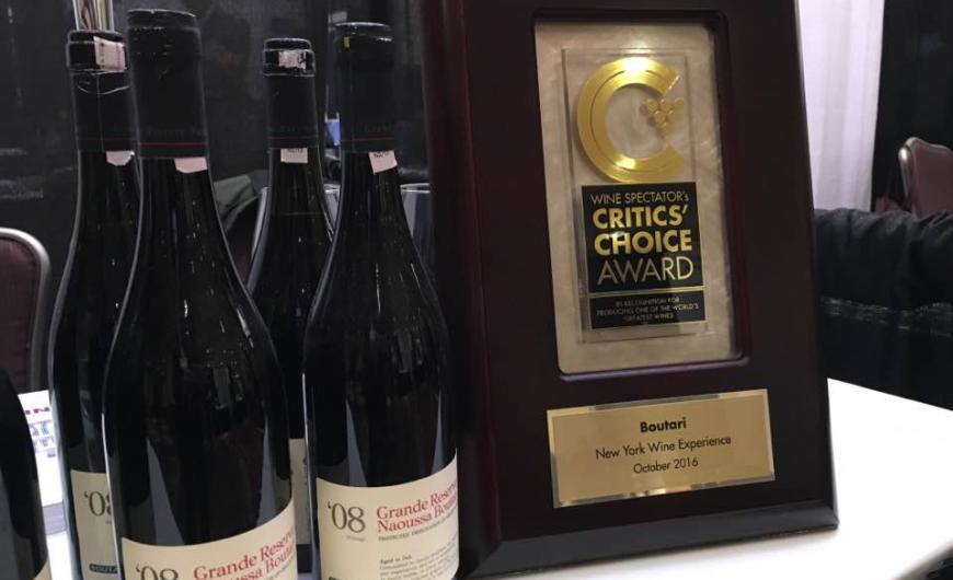 Ακόμη μία διεθνής επιτυχία για το ελληνικό κρασί που τα τελευταία χρόνια χαράσσει μια συνεχώς ανοδική πορεία. Tο «Grand Reserve Νάουσσα Μπουτάρη 2008» απέσπασε το Wine Spectators Critics’ Award, στο Grand Tasting του New York Wine Experience.