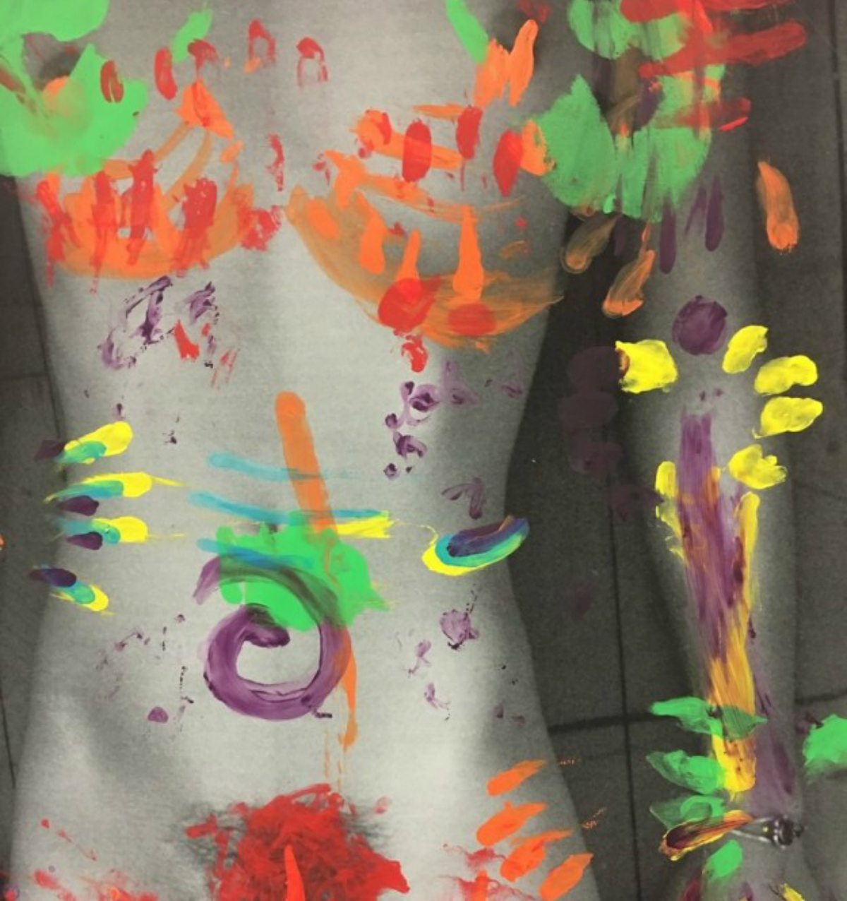 H Krenzer έβγαλε μια φωτογραφία μία φίλη της και την εκτύπωσε σε πραγματικό μέγεθος. Μετά, πρόσθεσε την μπογιά με τα δάχτυλα.