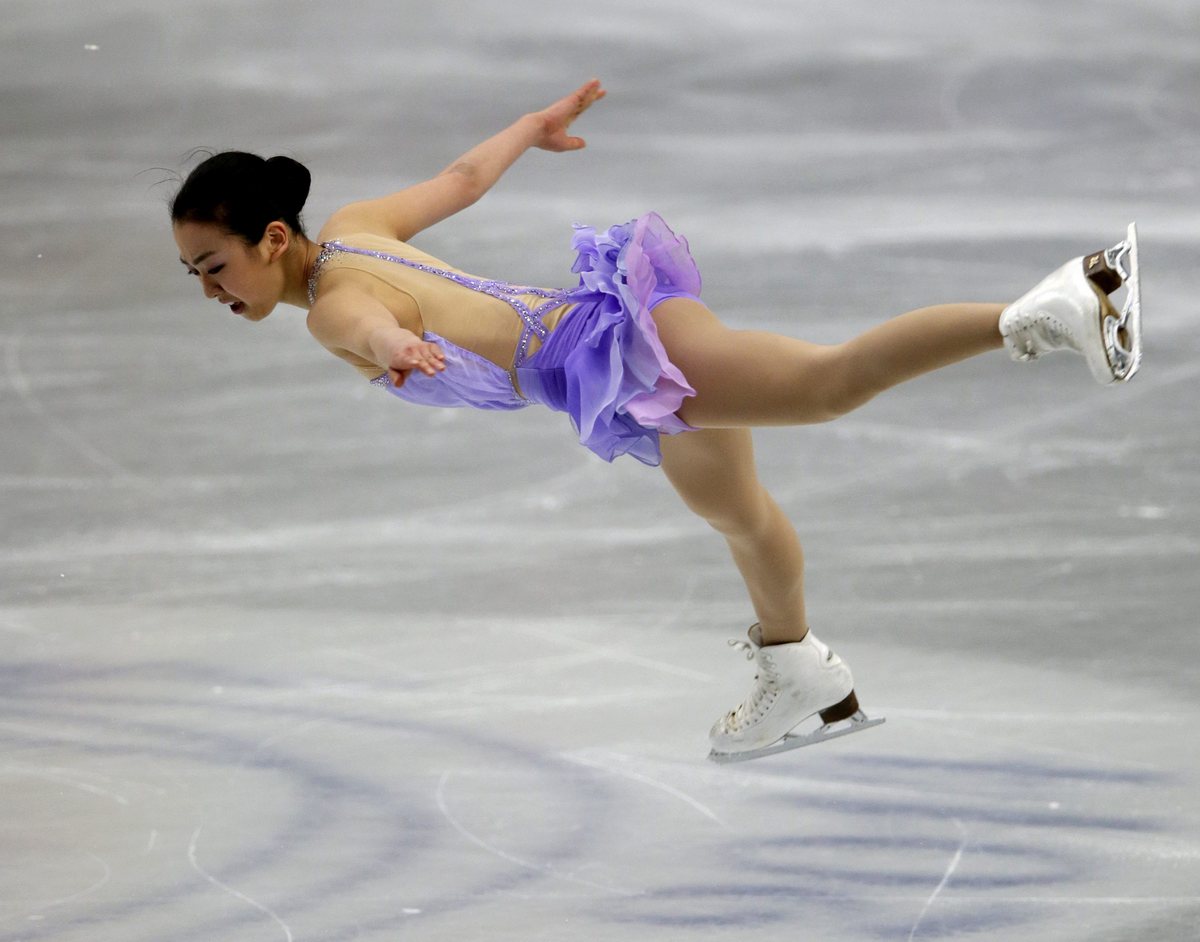 epa04142937 Mao Asada of Japan performs during the women's singles short program of the ISU World Figure Skating Championships in Saitama, north of Tokyo, Japan, 27 March 2014. EPA/KIMIMASA MAYAMA