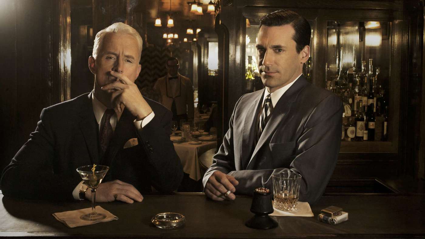 Roger Sterling (John Slattery) and Don Draper (Jon Hamm) at the bar -- again.