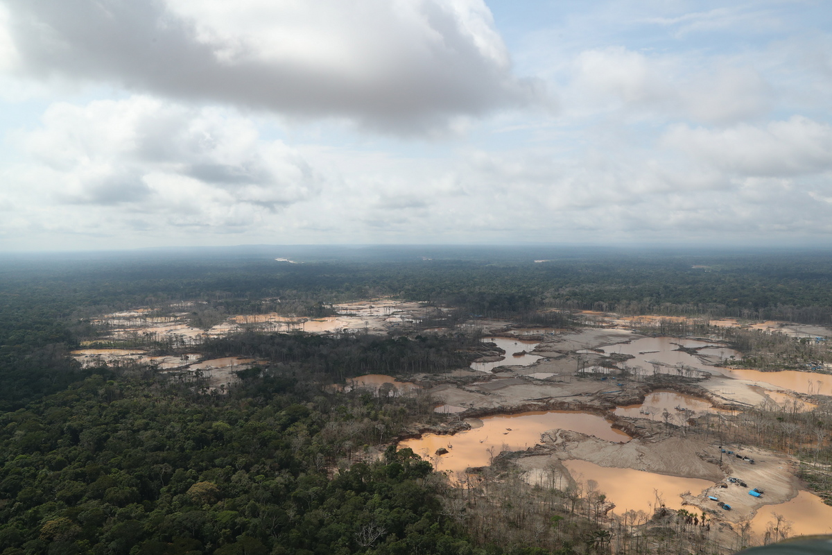 epa07416192 Aerial view shows a deforested area of the Peruvian Amazon rainforest caused by illegal mining, in the Deparment of Madre de Dios, Peru, 05 March 2019. Peruvian government put into effect today to the consolidation of the plan against illegal mining in the Amazon region of Madre de Dios with the installation of three military bases in the area of La Pampa, a focus of deforestation and contamination by mercury. Peru is the first gold producer in Latin America and the sixth worldwide, but experts estimate that up to 25% of annual gold production comes from illegal mining. EPA/Guadalupe Pardo / POOL