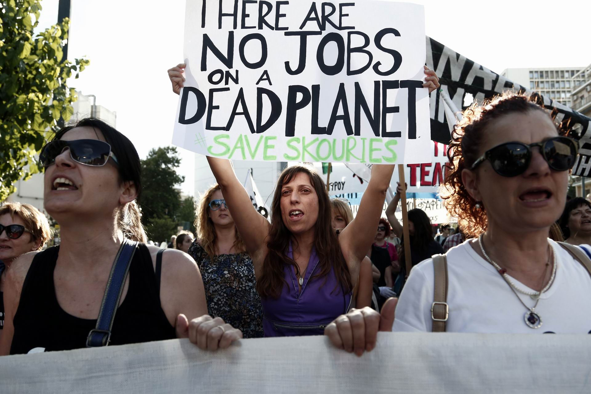 Πορεία διαμαρτυρίας προς το υπουργείο Παραγωγικής Ανασυγκρότησης Περιβάλλοντος και Ενέργειας από κατοίκους της Χαλκιδικής και οργανώσεις που αντιδρούν στη εξόρυξη χρυσού στις Σκουριές. Αθήνα, Τετάρτη 3 Ιουνίου 2015