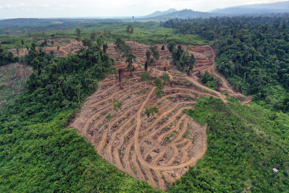 epa07747194 A photograph taken with a drone shows areas of forest that have been cleared for oil palm plantations, in Bawa village, Subulusalam, Aceh, Indonesia, 27 July 2019 (issued 29 July 2019). Indonesia is the world's largest producer of palm oil, made from the pulp of the palm fruit. It is widely used cooking and the commercial food industry. Many palm plantations have contributed to the deforestation of tropical rainforest, causing the death and displacements of many species, among them the critically endangered orangutan and Sumatran elephant. EPA/HOTLI SIMANJUNTAK