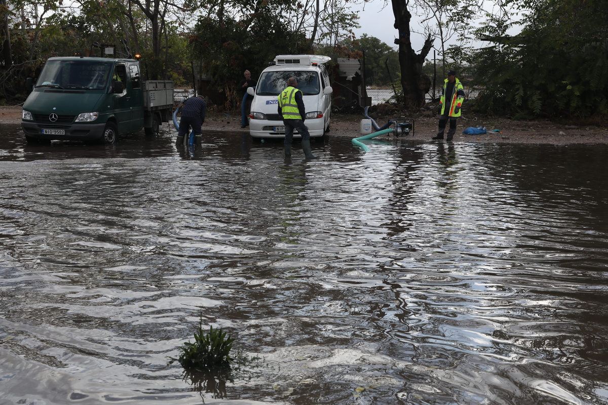 Óõíåñãåßá êÜíïõí áðÜíôëçóç õäÜôùí óôçí ðëçììõñéóìÝíç, áðü ôéò éó÷õñÝò âñï÷ïðôþóåéò ðïõ Ýðëçîáí ôçí ÁôôéêÞ, ïäü Áíôéãüíçò óôïí Êïëùíü, ÐáñáóêåõÞ 15 Ïêôùâñßïõ 2021. Ç êáêïêáéñßá «ÌðÜëëïò» óõíå÷ßæåé íá ðëÞôôåé ôç ÷þñá. Éó÷õñÝò âñï÷Ýò êáé êáôáéãßäåò óçìåéþèçêáí áðü ôçí áñ÷Þ ôïõ åéêïóéôåôñáþñïõ óÞìåñá óå áñêåôÝò ðåñéï÷Ýò ôçò ÷þñáò, åíþ ÷éïíïðôþóåéò êáôáãñÜöçêáí óôá ïñåéíÜ ôçò ÄõôéêÞò Ìáêåäïíßáò êáé ôçò Ðßíäïõ. ÁÐÅ-ÌÐÅ/ÁÐÅ-ÌÐÅ/ÃÉÙÑÃÏÓ ÂÉÔÓÁÑÁÓ