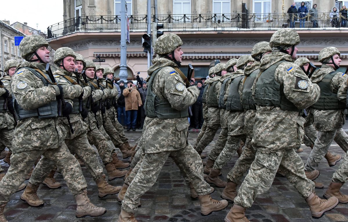 epa05662117 Ukrainian soldiers march in the downtown of Lviv city, western Ukraine, 06 December 2016. Ukrainians celebrate the Ukrainian Army Day. EPA/MYKOLA TYS