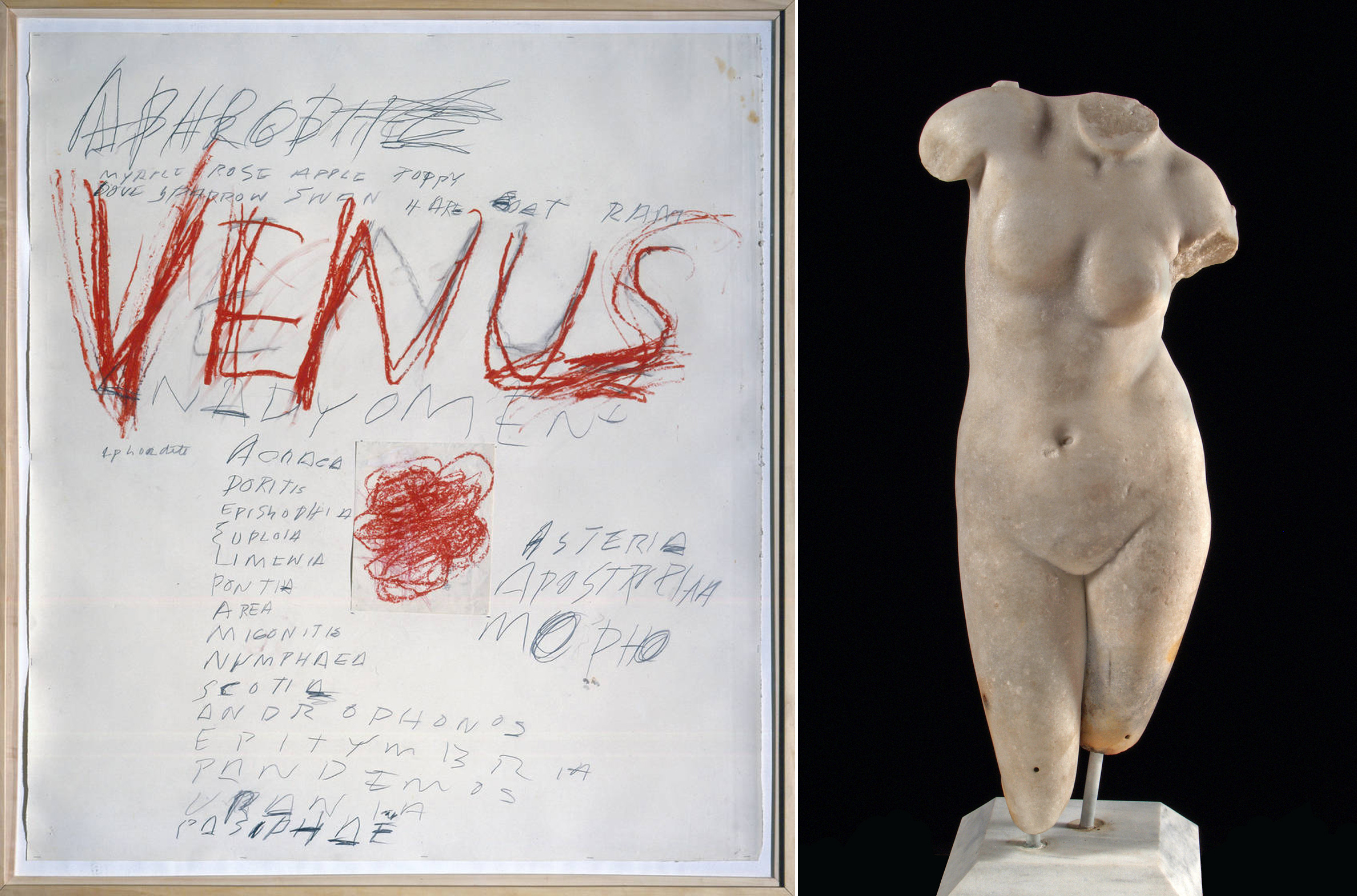 Για πρώτη φορά, έργα του σύγχρονου Αμερικανού καλλιτέχνη Cy Twombly εμπνευσμένα από την ελληνική μυθολογία και την επαφή του με την Ελλάδα θα παρουσιαστούν δίπλα σε έργα της αρχαιότητας, ανοίγοντας ένα μοναδικό και πρωτότυπο διάλογο μεταξύ της αρχαίας ελληνικής και της σύγχρονης τέχνης. Η έκθεση θα διαρκέσει από τις 25 Μαϊου μέχρι 3 Σεπτεμβρίου στο Μουσείο Κυκλαδικής Τέχνης.