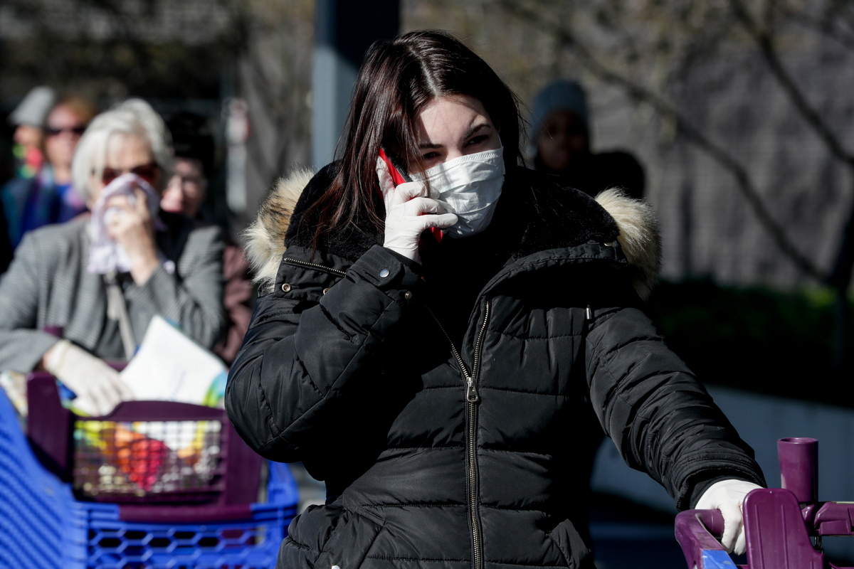 epa08302931 People queue in front of a supermarket in Drogenbos, Belgium, 18 March 2020. Belgium is implementing confinement guidelines for the public which a scheduled to be in place until 05 April 2020. Only supermarkets and essential trade will remain open. EPA/STEPHANIE LECOCQ
