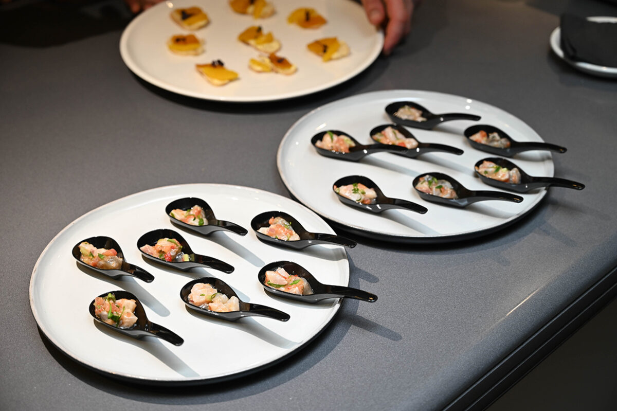 Στον πρόσφατα ανανεωμένο χώρο της Χατζηγιάννη Μέξη, οι καλεσμένοι είχαν την ευκαιρία να δοκιμάσουν πιάτα από το μενού που με τα χρόνια έχουν γίνει κλασικά: όπως χταπόδι με φάβα, αυγοτάραχο Τρικαλινός σε φρυγανισμένο ψωμί, μοσχαρίσιο διάφραγμα με πουρέ μανιταριών και μαύρο ρύζι, το περίφημο κολάρο σφυρίδας bianco της Cookoovaya αλλά και αρνί τσιγαριαστό συνοδεία κρασιών του ελληνικού αμπελώνα, με την ευγενική χορηγία της Trinity Wines.