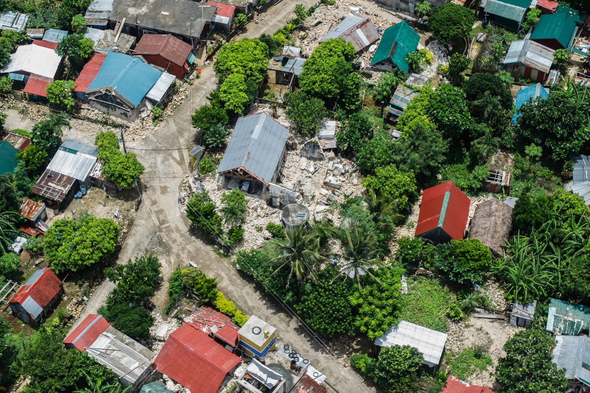 epa07746126 A handout picture made available by the Presidential Photographers Division (PPD) shows damaged houses, during President Rodrigo Duterte's aerial inspection of earthquake-hit town of Itbayat, Bataan island, Philippines, 28 July 2019. At least eight people were killed and around 60 were injured in the Philippines after a series of earthquakes with magnitudes ranging from 5.4 to 5.9 struck the northern Batanes islands in the early hours of 27 Juy, provincial authorities said. EPA/PPD HANDOUT HANDOUT EDITORIAL USE ONLY/NO SALES