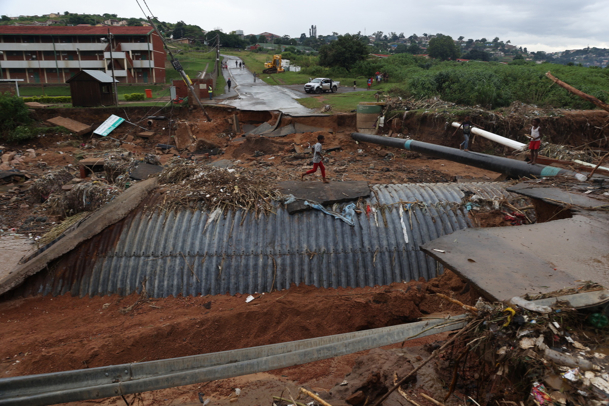 Σε πολλές περιοχές, η ύδρευση και η ηλεκτροδότηση συνεχίζουν να είναι κομμένες από τη Δευτέρα. Στο προάστιο Αμαότι (βόρειο Ντέρμπαν), τσαμπιά ανθρώπων μάζευαν πόσιμο νερό από σωλήνωση που έσπασε.