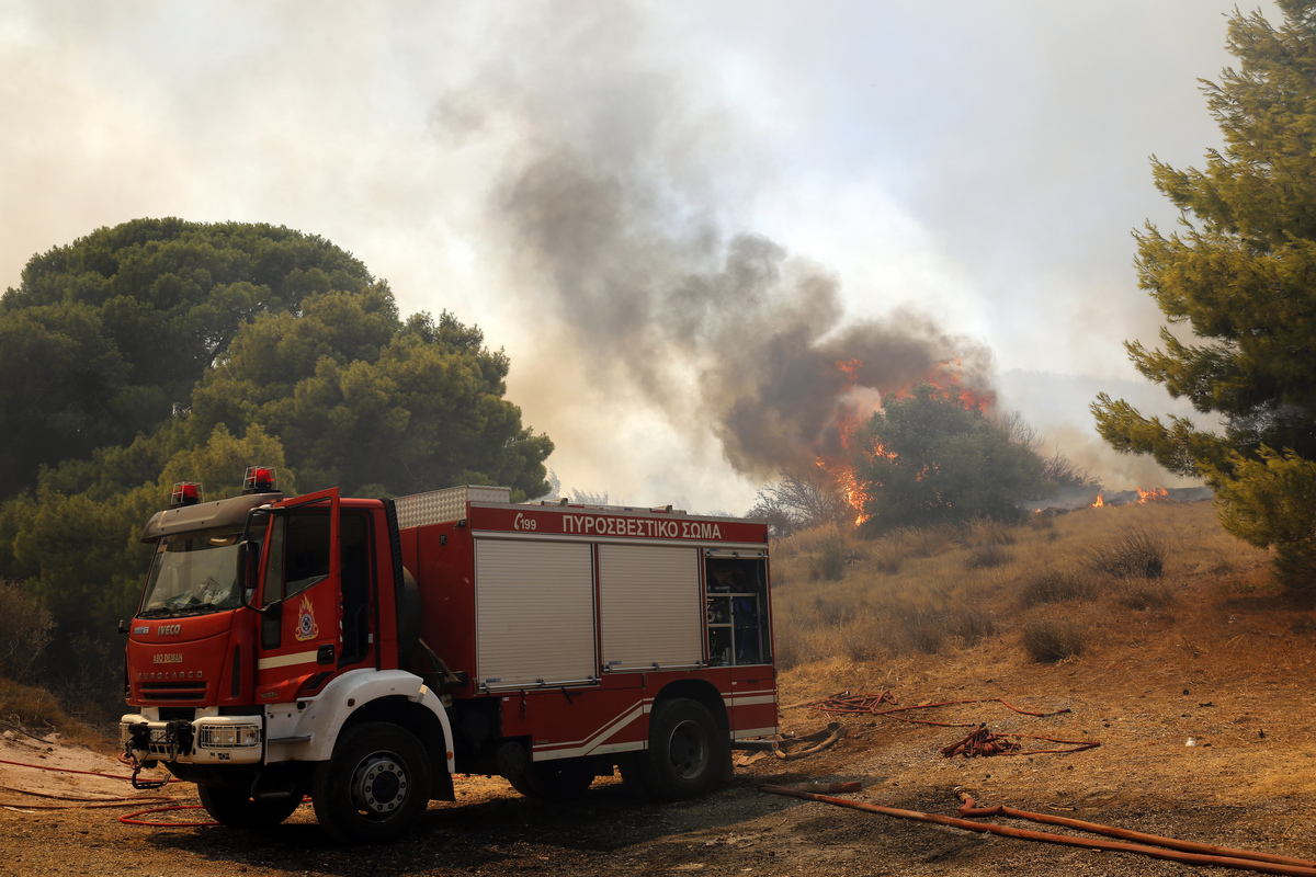 Πυροσβέστικό όχημα συνδράμει στην κατάσβεση πυρκαγιάς που ξέσπασε στην περιοχή της Κερατέας, Δευτέρα 16 Αυγούστου 2021. Νέο μήνυμα από το 112 πριν από λίγο λεπτά, προτρέπει τους κατοίκους του Αγίου Κωνσταντίνου στην Κερατέα να εκκενώσουν τα σπίτια τους και να κατευθυνθούν προς την Ανάβυσσο. Νωρίτερα, με αντίστοιχα μηνύματα είχαν δοθεί εντολές εκκένωσης για τους οικισμού Μαρκάτι και Συντερίνα. Εν τω μεταξύ ενισχύθηκαν οι δυνάμεις και αυτή την ώρα επιχειρούν 71 πυροσβέστες με 25 οχήματα και τρεις ομάδες πεζοπόρων τμημάτων, το ΜΕΤΠΕ, έξι αεροσκάφη και τέσσερα ελικόπτερα με τη συνδρομή από υδροφόρες δήμων. ΑΠΕ-ΜΠΕ/ΑΠΕ-ΜΠΕ/ΑΛΕΞΑΝΔΡΟΣ ΒΛΑΧΟΣ