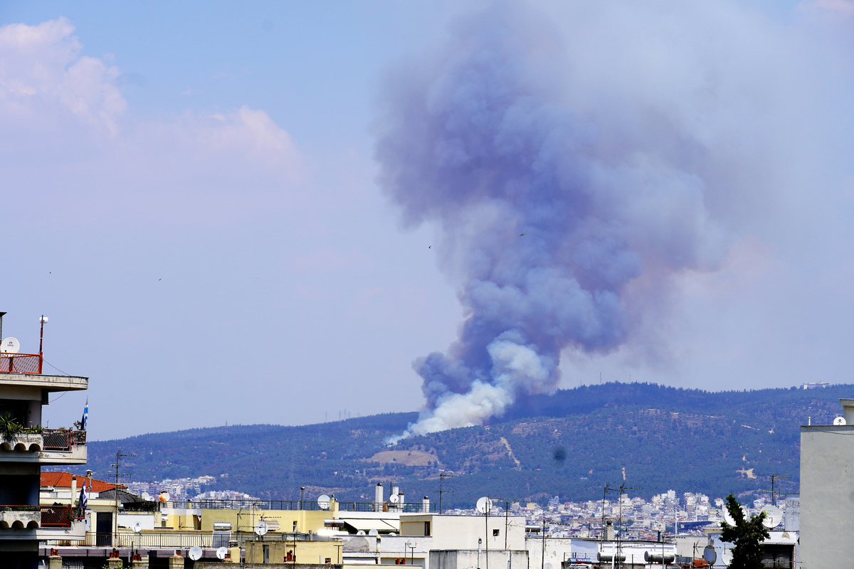 Πυκνός καπνός διακρίνεται στο σημείο που ξέσπασε πυρκαγιά στο Σέιχ Σου στη Θεσσαλονίκη, Τρίτη 13 Ιουλίου 2021. Πυρκαγιά σε δασική έκταση στην περιοχή Αγίου Παύλου, του δήμου Νεάπολης Συκεών, Θεσσαλονίκης. Κινητοποιήθηκαν επίγειες και εναέριες δυνάμεις σύμφωνα με την Πυροσβεστική. ΑΠΕ-ΜΠΕ/ΑΠΕ-ΜΠΕ/STR