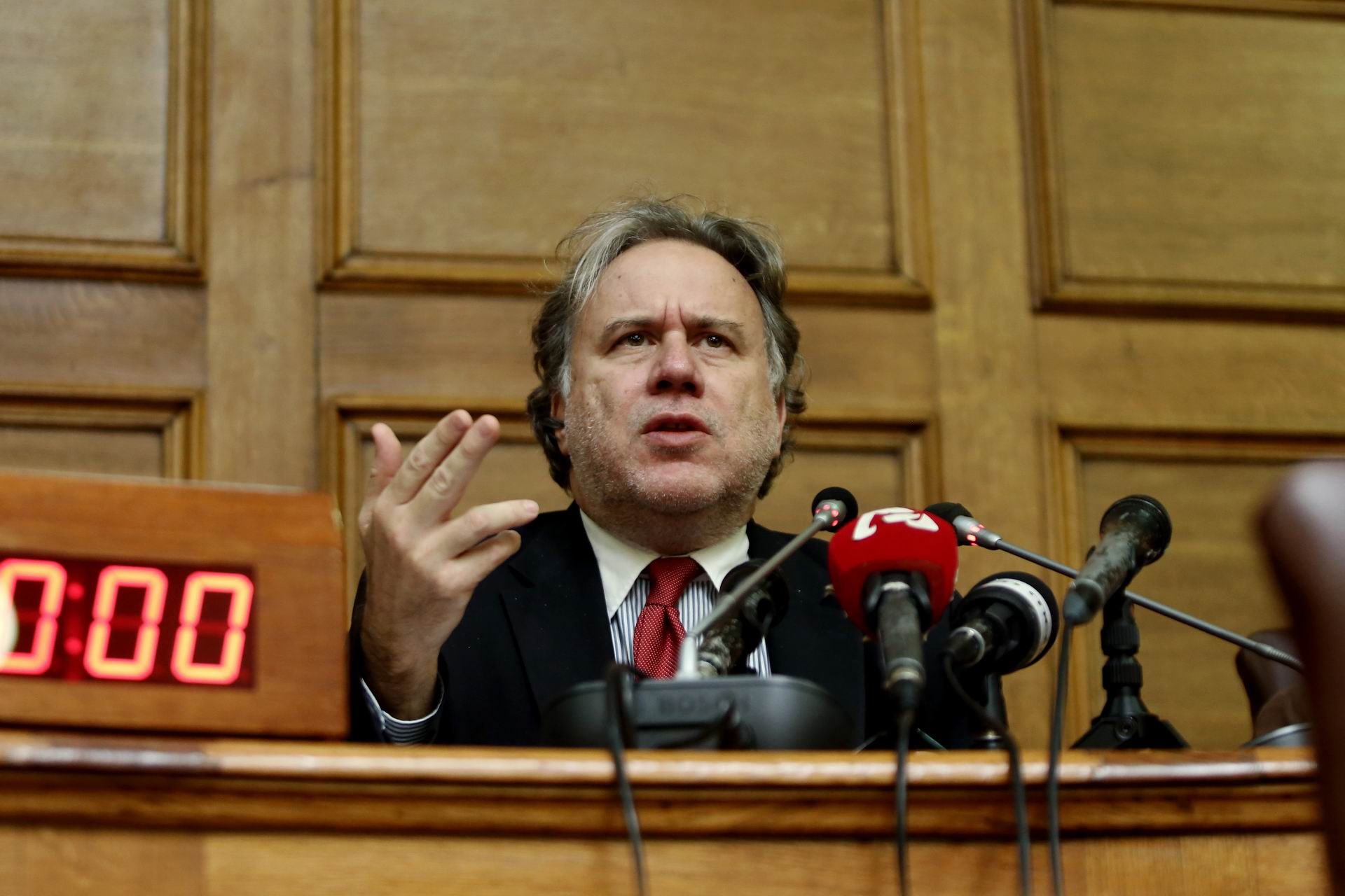 Ο Υπουργός Εργασίας, Κοινωνικής Ασφάλισης και Κοινωνικής Αλληλεγγύης Γιώργος Κατρούγκαλος, παρουσιάζει το πόρισμα της «επιτροπής σοφών» του υπουργείου για το ασφαλιστικό, στην Βουλή. Αθήνα, Πέμπτη 15 Οκτωβρίου 2015.
