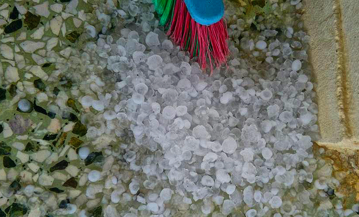 Δέντρα πεσμένα πάνω σε σιδηροδρομικές γραμμές, ηλεκτρικά καλώδια στο έδαφος, εκατοντάδες στέγαστρα και αυτοκίνητα καταπλακωμένα από χοντρό χαλάζι: η καταιγίδα ήταν σύντομη αλλά εξαιρετικά σφοδρή.