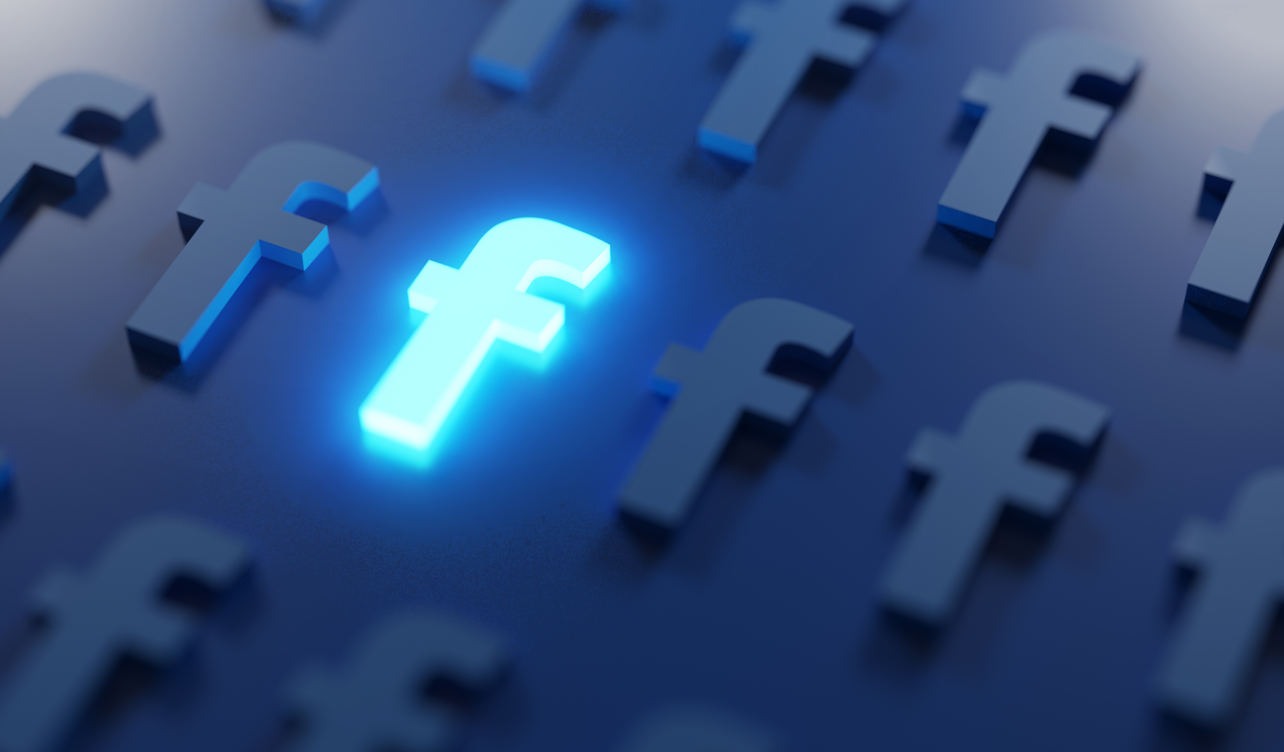 Stand Out on Social Media Concept. Glowing Facebook Logo