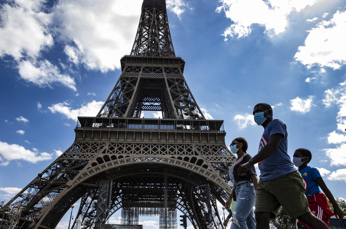 epaselect epa08629174 A family wearing protective face masks walk near the Eiffel Tower, in Paris, France, 27 August 2020. French Prime Minister Jean Castex has announced that measures are being taken to enforce mask-wearing across the entire city of Paris, which has been declared a zone of 'active circulation' for the coronavirus SARS-CoV-2 which causes the Covid-19 disease. Cases in France have surged in recent weeks, with over 5000 new cases recorded in a 24 hour period. EPA/IAN LANGSDON