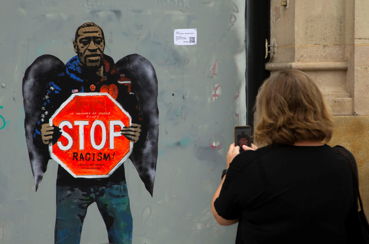 Γκράφιτι κατά του ρατσισμού με την μορφή του George Floyd, σε δρόμο της Βαρκελώνης.