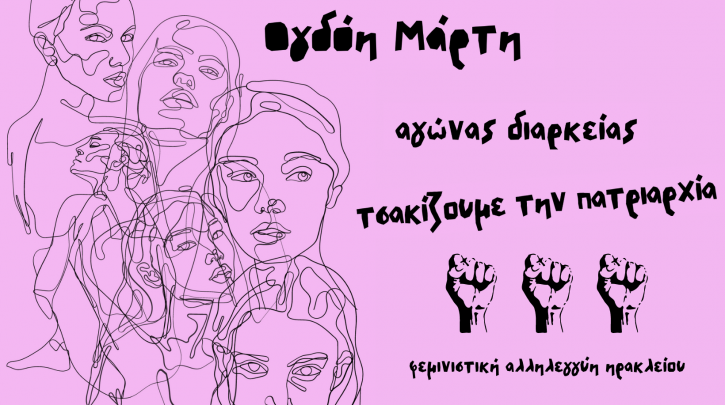Καλούμε όλες τις θηλυκότητες, και τους συμμάχους μας σε έναν διαρκή αγώνα ενάντια στην πατριαρχία, και συμμετέχουμε στην απεργία της 8ης Μάρτη, με συγκέντρωση στα Λιοντάρια στη 13:00 το μεσημέρι, τηρώντας όλα τα μέτρα υγειονομικής προστασίας.