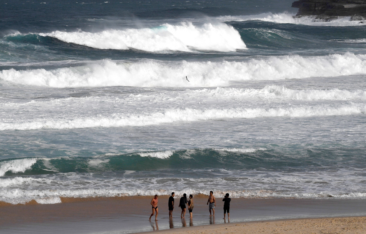 epa06735032 People stand on the shore looking out at the rough wave conditions at Bondi Beach in Sydney, New South Wales, Australia, 14 May 2018. EPA/DAVID MOIR AUSTRALIA AND NEW ZEALAND OUT