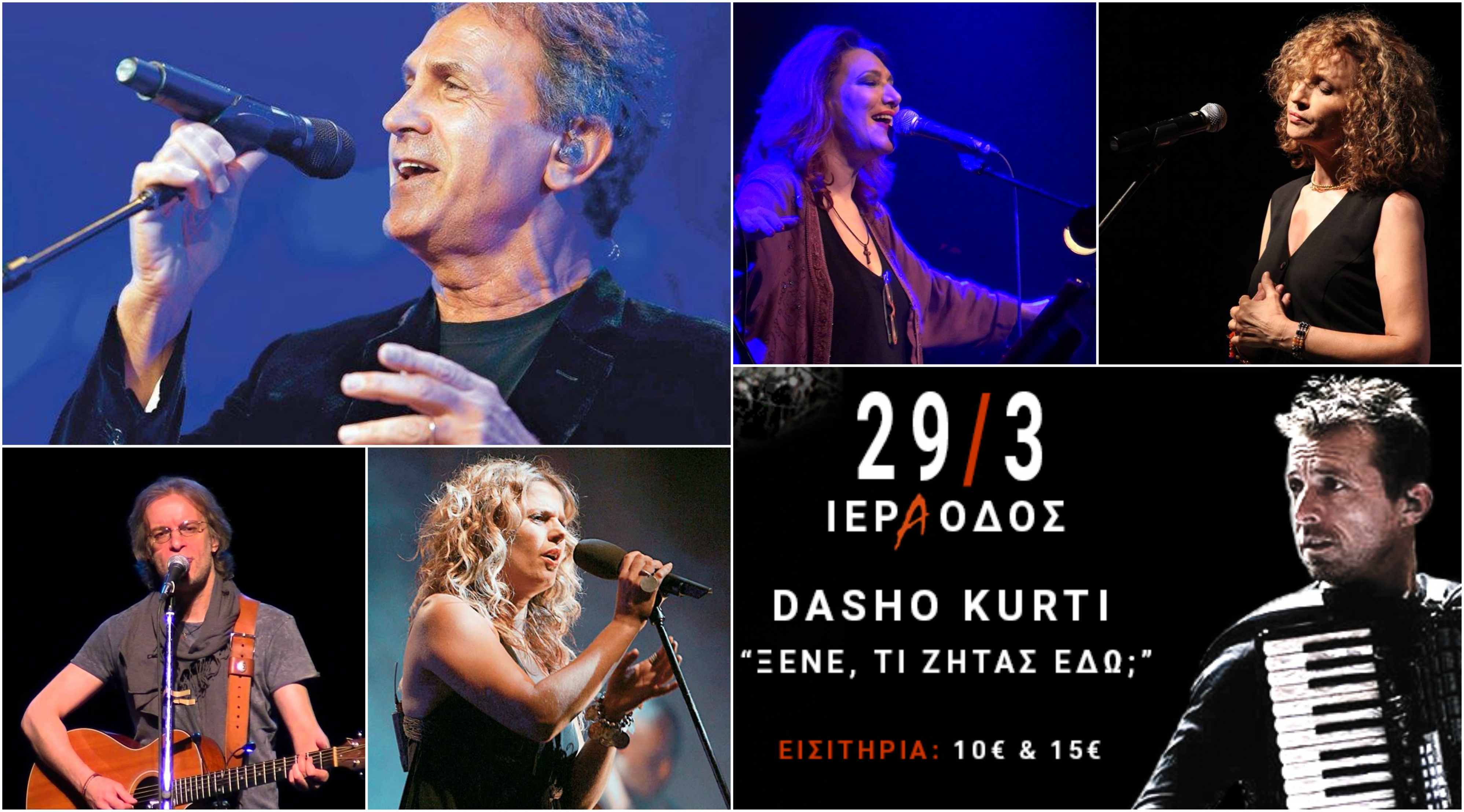 «Dasho Kurti – Ξένε, τι ζητάς εδώ» είναι ο γενικός τίτλος της μεγάλης μουσικής συνάντησης Τραγουδάμε για τη προσφυγιά, στην οποία συμμετέχουν αφιλοκερδώς, εξαιρετικοί καλλιτέχνες για τους οποίους ο Dasho Kurti έγραψε τραγούδια, και η οποία θα πραγματοποιηθεί την Τετάρτη 29 Μαρτίου στην Ιερά Οδό.