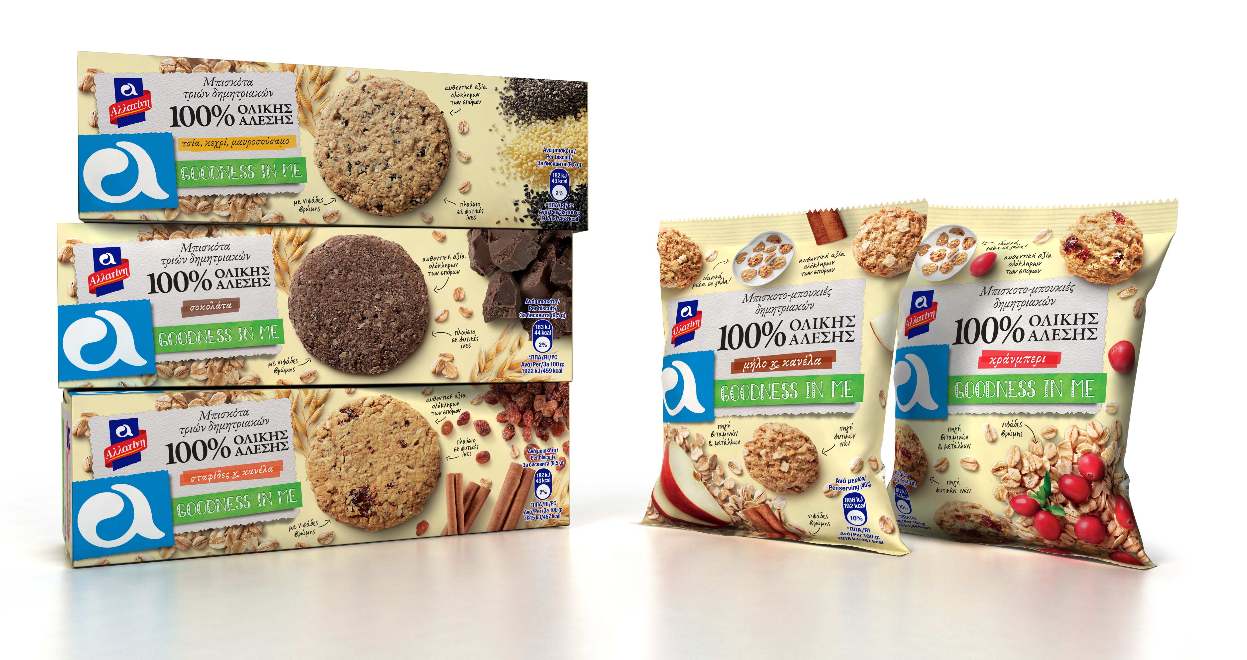 Η νέα σειρά μπισκότων ΑΛΛΑΤΙΝΗ Goodness in Me από δημητριακά 100% ολικής άλεσης αποτελεί πηγή φυτικών ινών, ενώ προσφέρεται σε μερίδες που καθεμία είναι λιγότερο από 200 θερμίδες.