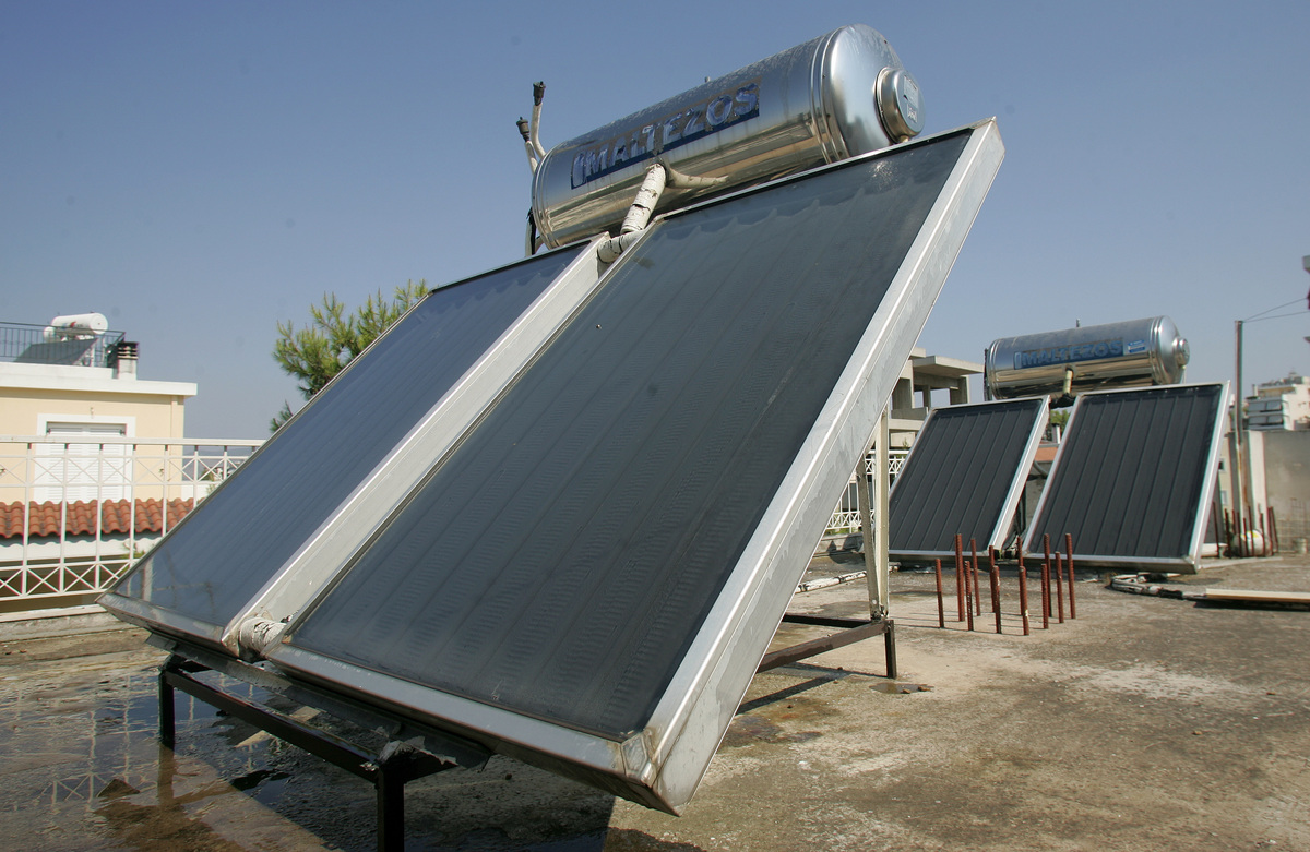 Ηλιακός θερμοσίφωνας σε ταράτσα πολυκατοικίας, Τετάρτη 17 Αυγούστου 2011. ΑΠΕ-ΜΠΕ/ΑΠΕ-ΜΠΕ/ΑΛΕΞΑΝΔΡΟΣ ΒΛΑΧΟΣ