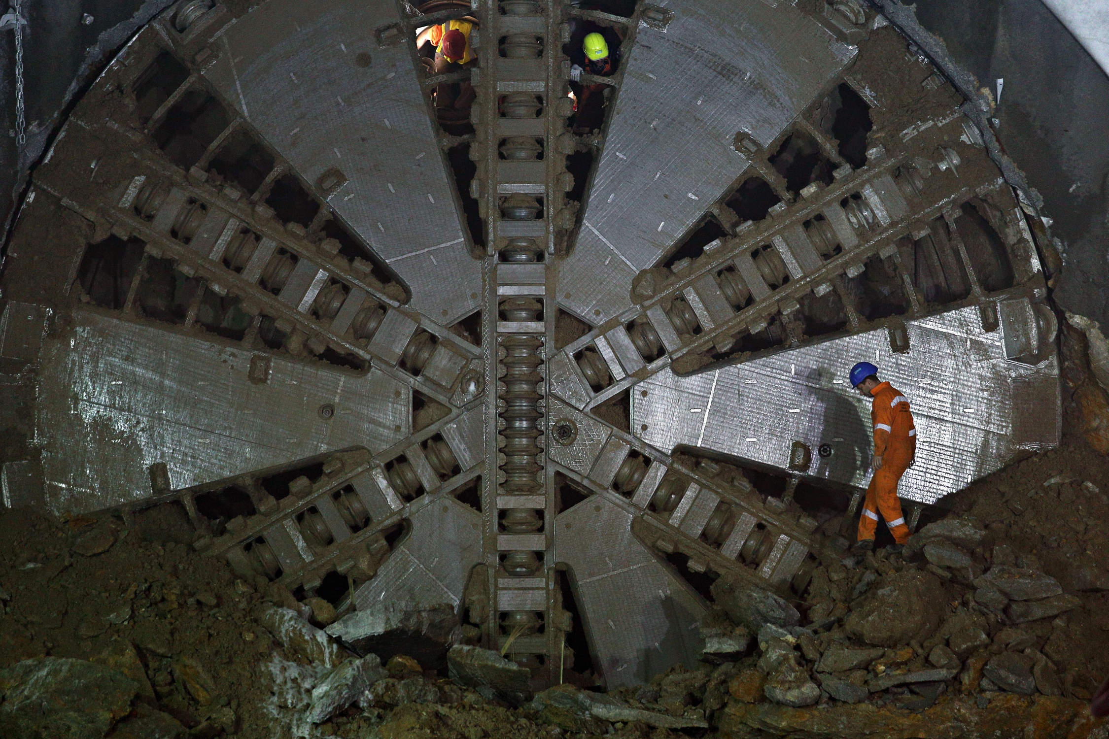 TBM makes a breakthrough at Maniatika station in Piraeus, Greece on Mar. 22,2017 / Διάνοιξη σήραγγας στο σταθμό Μανιάτικα του μετρό παρουσία του υπουργού υποδομών Χρήστου Σπίρτζη, στην Αθήνα στις 22 Μαρτίου,2017