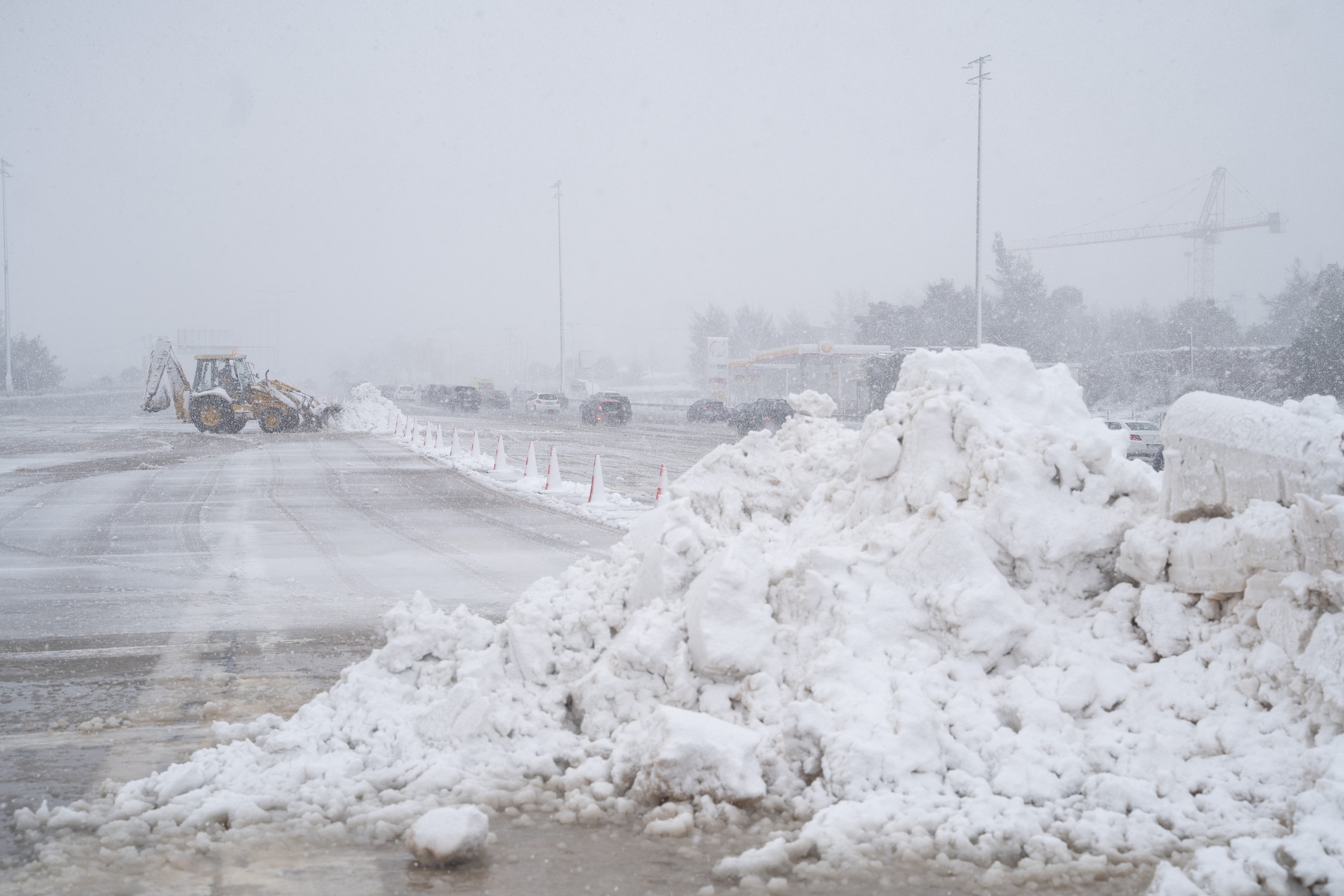 Cold weather front Barbara hits Greece. Graders clean the road from snow and ice at the toll station of Afidnes on the National Road of Greece, Afidnes, Athens, on February 5, 2023 / Κακοκαιρία Μπάρμπαρα προκαλεί χιονόπτωση. Εκχιονιστικά μηχανήματα, στο σταθμο διοδίων των Αφιδνών, στις 5 Φεβρουαρίου, 2023