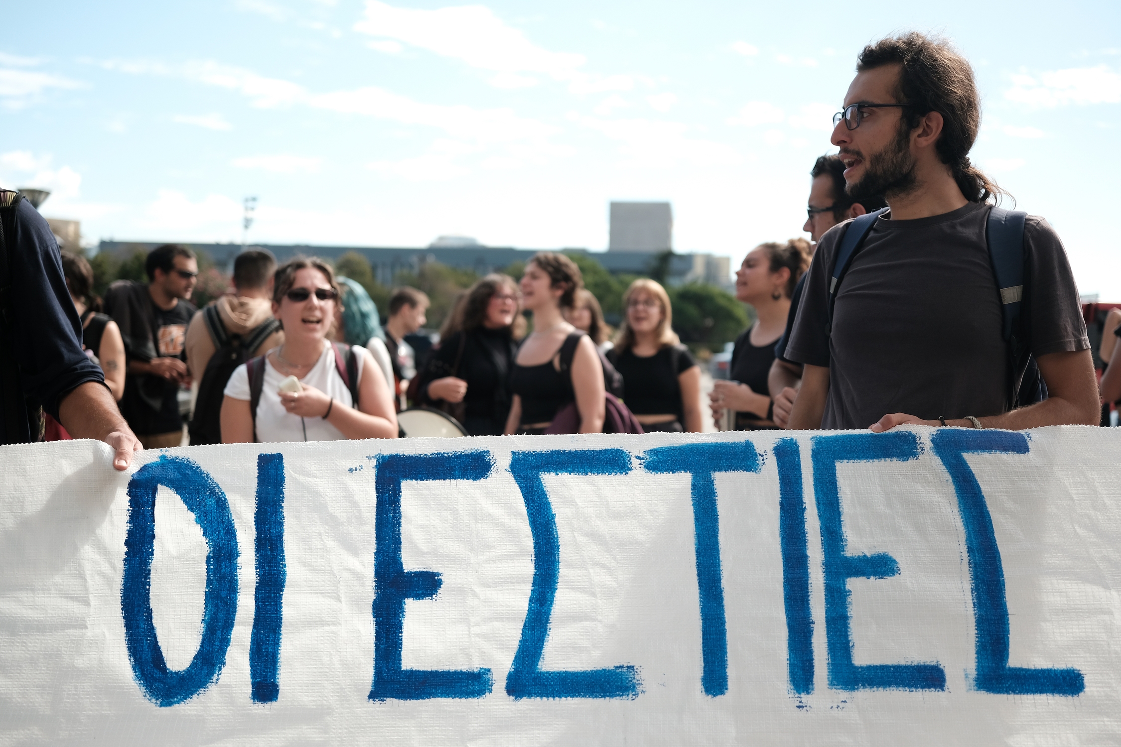 Student protest at the AUTH administration building on the occasion of the elevator falling in the 3rd Student Residences, Thessaloniki October 10, 2024. / Διαμαρτυρία φοιτητών στο κτίριο διοίκησης του ΑΠΘ με αφορμή την πτώση του ασανσέρ στο κενό, στις Γ´ Εστίες, Θεσσαλονίκη 10 Οκτωβρίου 2024.