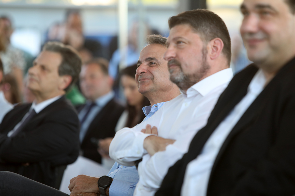 Ο πρωθυπουργός Κυριάκος Μητσοτάκης (Α) και ο περιφερειάρχης Αττικής Νίκος Χαρδαλιάς (Δ) παρευρίσκονται στην εκδήλωση για την υπογραφή της σύμβασης κατασκευής του έργου της Περιφέρειας Αττικής «Αθηναϊκή Ριβιέρα, Αστικός Περίπατος», Αθήνα Δευτέρα 15 Ιουλίου 2024. ΑΠΕ-ΜΠΕ / ΑΠΕ-ΜΠΕ / ΓΙΩΡΓΟΣ ΒΙΤΣΑΡΑΣ