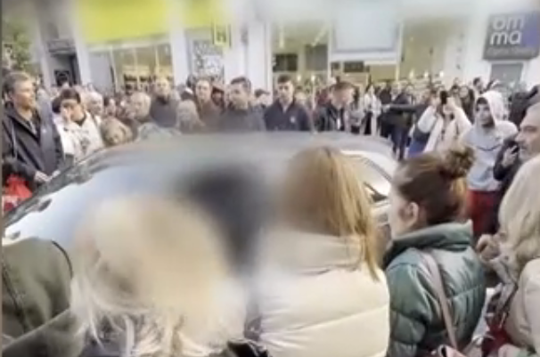 Σε βίντεο που κυκλοφόρησαν στα μέσα κοινωνικής δικτύωσης, φαίνεται το αυτοκίνητο στη μέση του δρόμου και ένα εξαγριωμένο πλήθος δεκάδων ανθρώπων που έχει περικυκλώσει το όχημα και επιτίθενται λεκτικά στον οδηγό, αγγίζοντας τα όρια του λιντσαρίσματος.