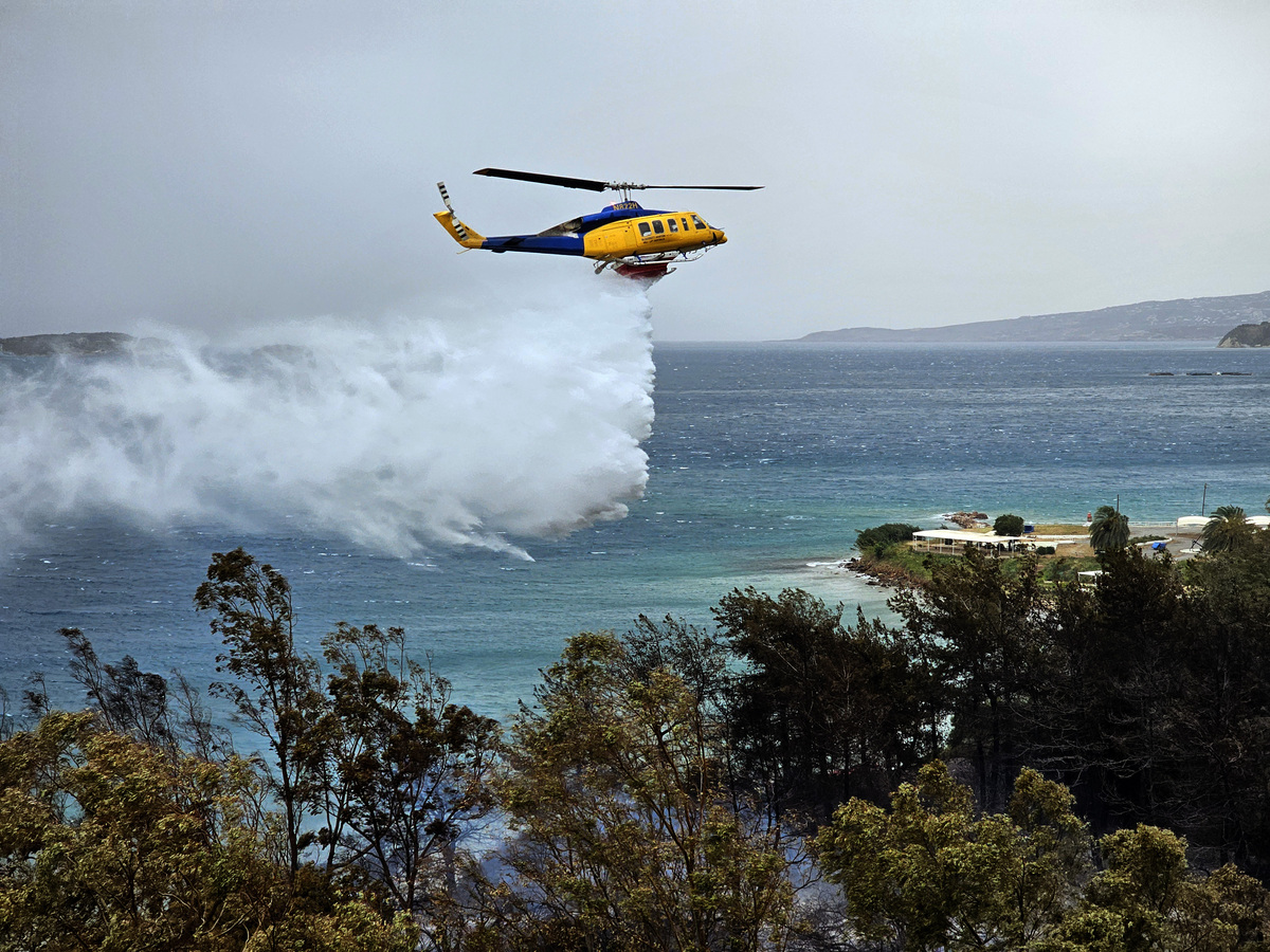 Πυροσβεστικό ελικόπτερο επιχειρεί στην κατάσβεση πυρκαγιάς που εκδηλώθηκε κοντά στον οικισμό στον Ναύσταθμο Χανίων, την Τρίτη 23 Απριλίου 2024. Διαστάσεις έχει λάβει η φωτιά που ξέσπασε λίγο πριν τις 9:00 στην περιοχή του οικισμού στον Ναύσταθμο Χανίων, με αποτέλεσμα να ζητηθεί η προληπτική εκκένωση του Δημοτικού Σχολείου, του Ναυτικού Νοσοκομείου και της Λέσχης Υπαξιωματικών. Οι ισχυροί άνεμοι που πνέουν στην περιοχή και αναμένεται να ενταθούν δυσκολεύουν την κατάσβεση της πυρκαγιάς, η οποία εκδηλώθηκε σε χαμηλή βλάστηση από άγνωστη αιτία. Στο σημείο, όπου υπάρχει έντονη βλάστηση, επιχειρούν αυτήν την ώρα 35 πυροσβεστικά οχήματα με 80 πυροσβέστες. ΑΠΕ-ΜΠΕ/ΑΠΕ-ΜΠΕ/ΠΕΤΡΟΣ ΠΑΤΤΑΚΟΣ
