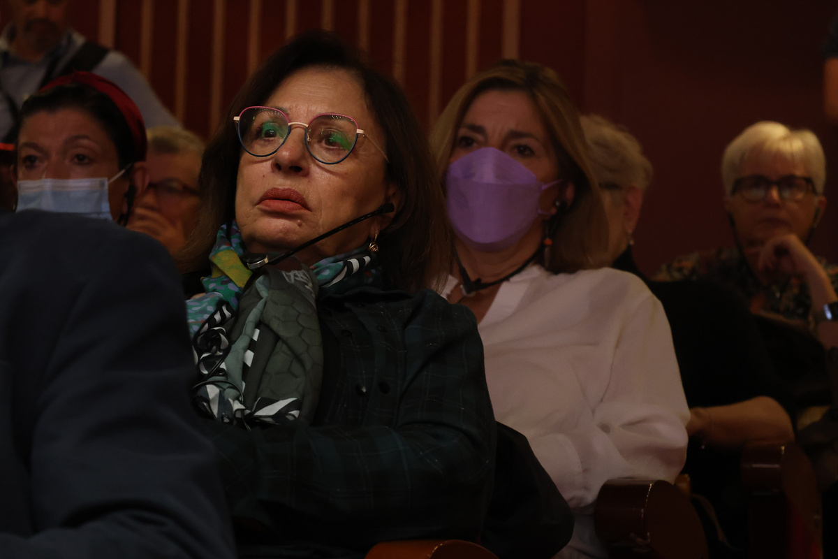 Η Χάρις Αλεξίου συμμετέχει σε ερωτήσεις του κοινού προς τον Βρετανό ιστορικό και δημοσιογράφο Μαρκ Μαζάουερ, μετά την προβολή της ταινίας του Τάκη Κανελλόπουλου «Ουρανός», κατά τη διάρκεια του 64ου Φεστιβάλ Κινηματογράφου Θεσσαλονίκης, στον κινηματογράφο Ολύμπιον στη Θεσσαλονίκη, το Σάββατο 4 Νοεμβρίου 2023. ΑΠΕ-ΜΠΕ/ΑΠΕ-ΜΠΕ/ΝΙΚΟΣ ΑΡΑΜΠΑΤΖΗ