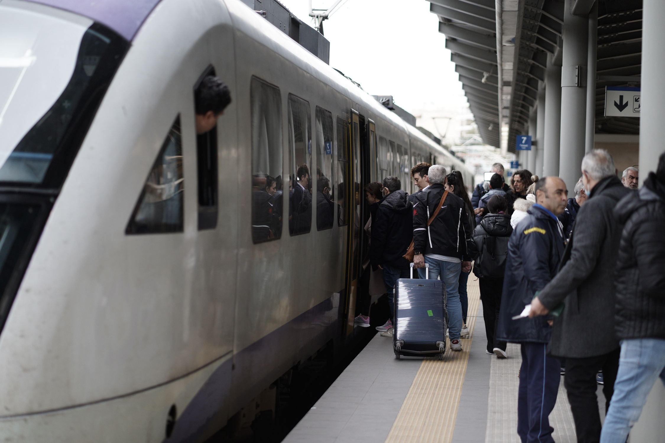 The Athens-Thessaloniki-Athens Intercity train line resumes for the first time after the Tempi deadly, train accident. Larisa Station, Athens, Greece, April 3, 2023 / Επαναλειτουργία της γραμμής Intercity Αθήνα - Θεσσαλονίκη - Αθήνα, μετά το σιδηροδρομικό ατύχημα στα Τέμπη. Στον Σταθμό Λαρίσης, στην Αθήνα, στις 3 Απριλίου, 2023
