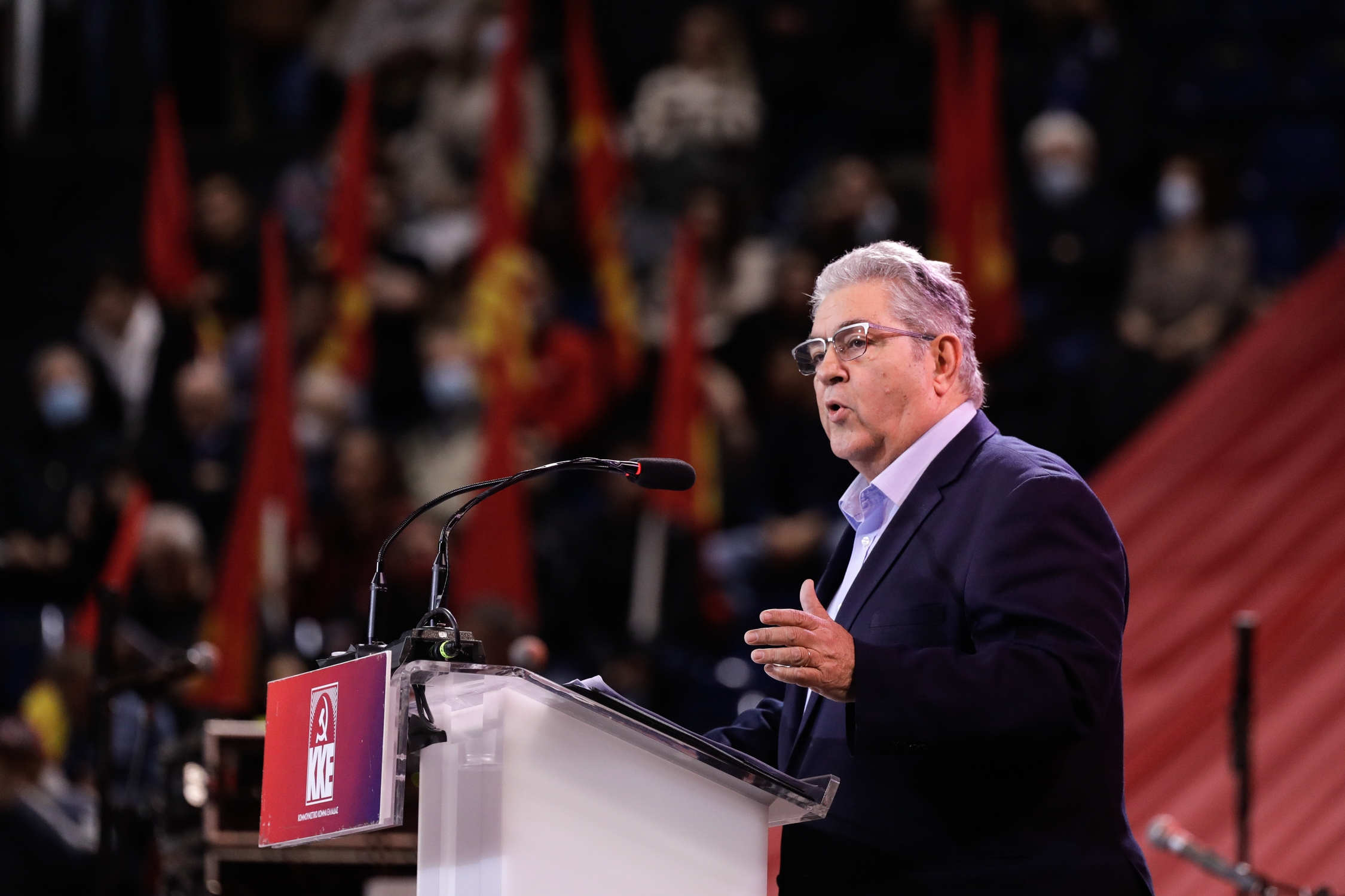 Speech by the General Secretary of the Central Committee of the Communist Party of Greece, Dimitris Koutsoumba, during a political event at the Palais De Sport, Thessaloniki, Greece on January 28, 2023. The political speech was followed by a concert dedicated to composer and songwriter Apostolos Kaldaras with George Dalaras. / Ομιλία του Γενικού Γραμματέα της Κεντρικής Επιτροπής του Κομμουνιστικού Κόμματος Ελλάδας, Δημήτρη Κουτσούμπα, στα πλαίσια πολιτικής - εκδήλωσης στο Παλέ Ντε Σπορ, Θεσσαλονίκη, 28 Ιανουαρίου 2023. Της πολιτικής ομιλίας ακολούθησε συναυλία αφιέρωμα στον Απόστολο Καλδάρα με τον Γιώργο Νταλάρα.