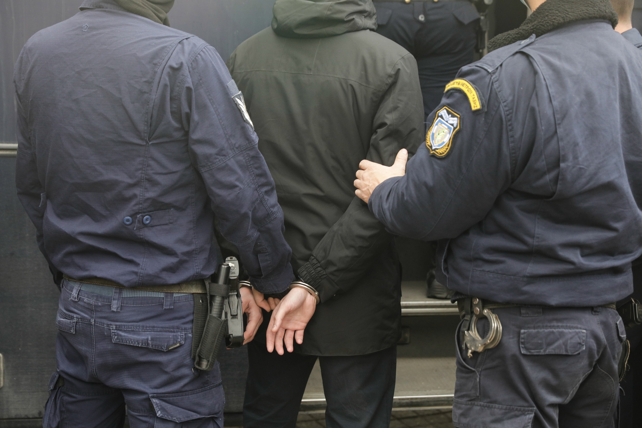 Οι κατηγορούμενοι για την δολοφονία του 18χρονου Αλκή Καμπανού αποχωρούν με τη συνοδεία της αστυνομίας από το Δικαστικό Μέγαρο Θεσσαλονίκης, 18 Ιανουαρίου 2023. Η δίκη διακόπηκε για τις 23 Ιανουαρίου.