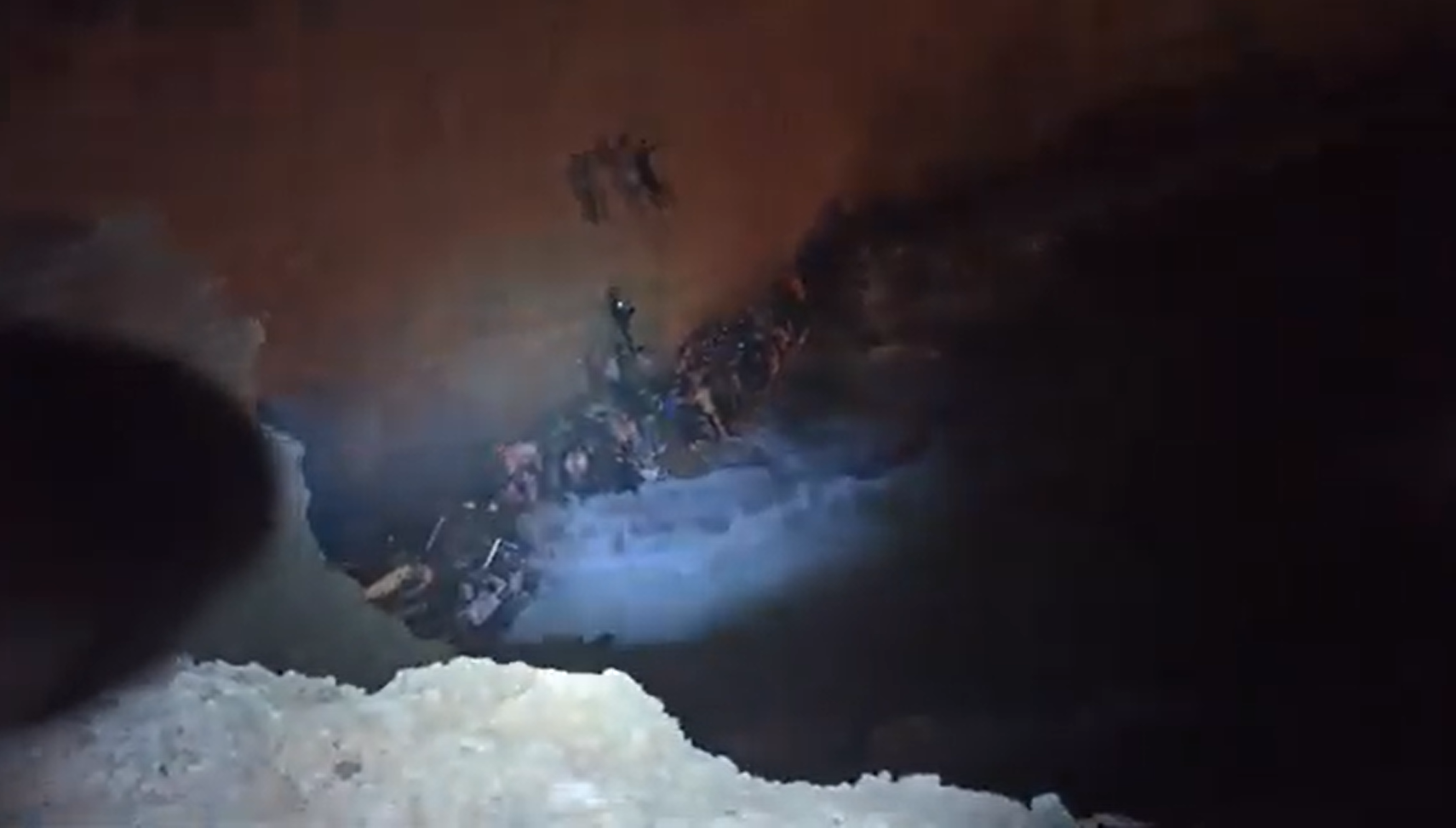 Οι διασώστες κατέβασαν σχοινιά στην παραλία για να βοηθήσουν τους επιζώντες να ανέβουν στα βράχια και να σωθούν.